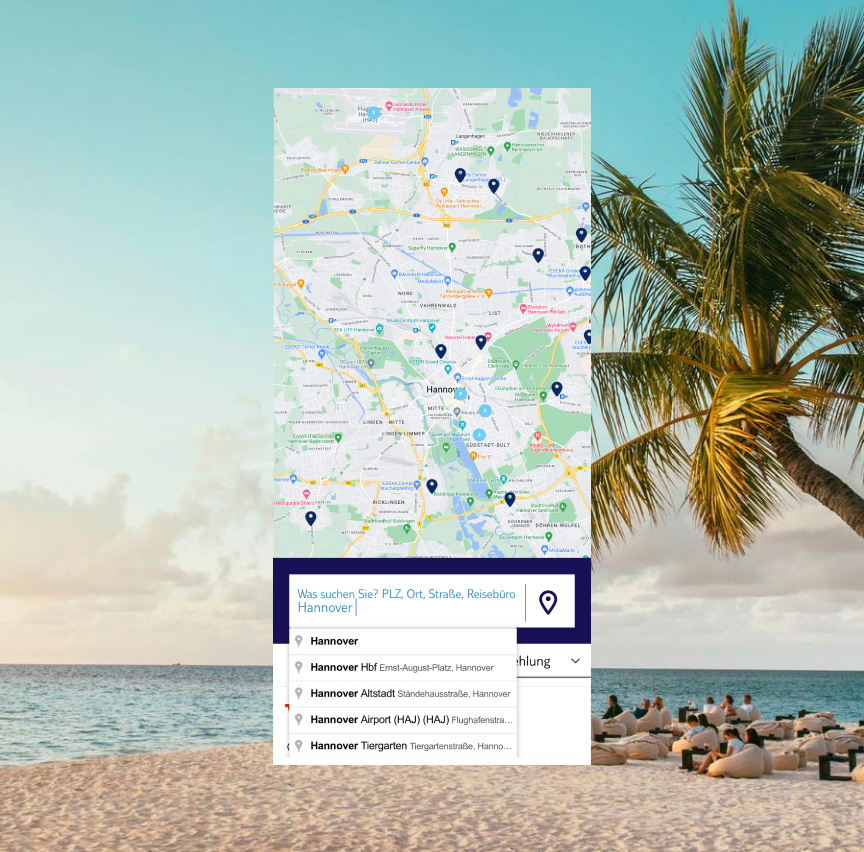 Ihr wollt euren Traumurlaub gerne mit unseren Expertinnen und Experten planen? Mit dem Reisebüro-Finder habt ihr in wenigen Augenblicken das nächstgelegene Reisebüro ausfindig gemacht.